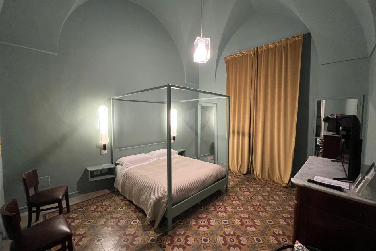 L’edificio che ospita la suite conserva strumenti originali dei maestri scalpellini e magnifiche volte salentine, tra cui la volta a spigolo e la volta a stella. Il restauro conservativo ha riportato alla luce intonaci e colori originali, creando un perfetto equilibrio tra passato e presente.